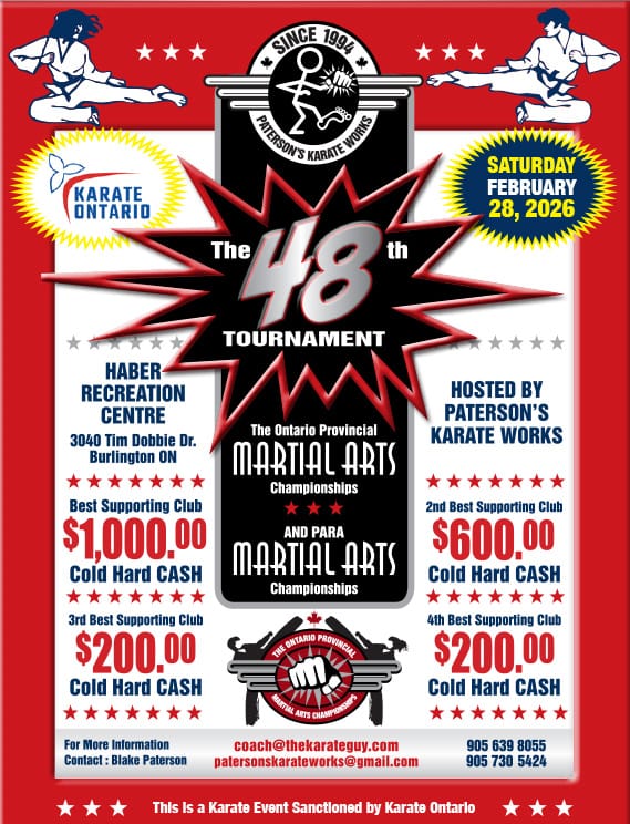 Contact: Blake Paterson at coach@thekarateguy.com or 905-639-8055